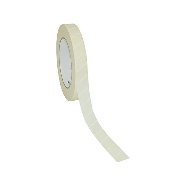 Ruban adhésif indicateur. Destiné à la fermeture sécurisée des paquets à conditionnement spécial pour la stérilisation à la vapeur. Avec indicateur de traitement de classe 1 (ISO 1140-1) standard, utilisable sur tous les types de conditionnement.